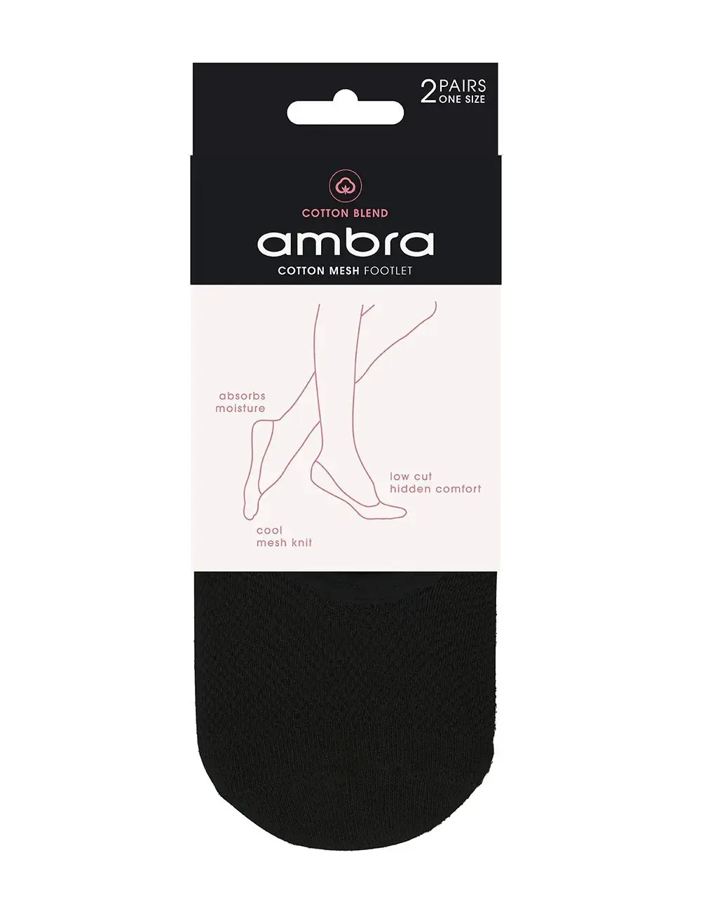 Ambra Cotton Mesh Footlet 2 pack features a low cut design in a cool cotton blend for hidden comfort. The mesh design absorbs moisture keeping you fresh throughout the day.