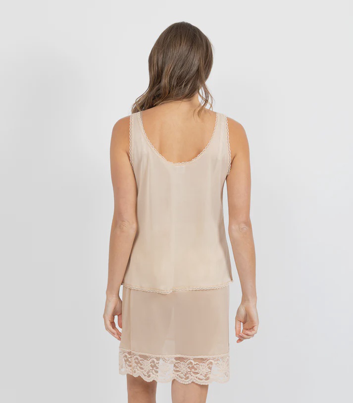 This camisole is designed with a pretty raschel lace, v-neckline and built up lace shoulders. For discreet wear under tops and dresses.