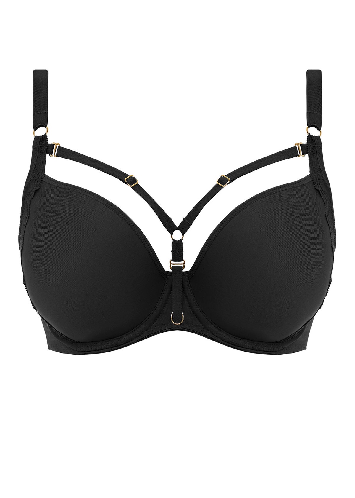 Freya’s Temptress Moulded Plunge Bra in Black is the perfect lingerie pick me up with it’s stand-out low centre front design that offers the desired cleavage without overspill and the detachable and adjustable fashion-forward strapping detail at the centre front, complete with beautiful gold rings and slides.