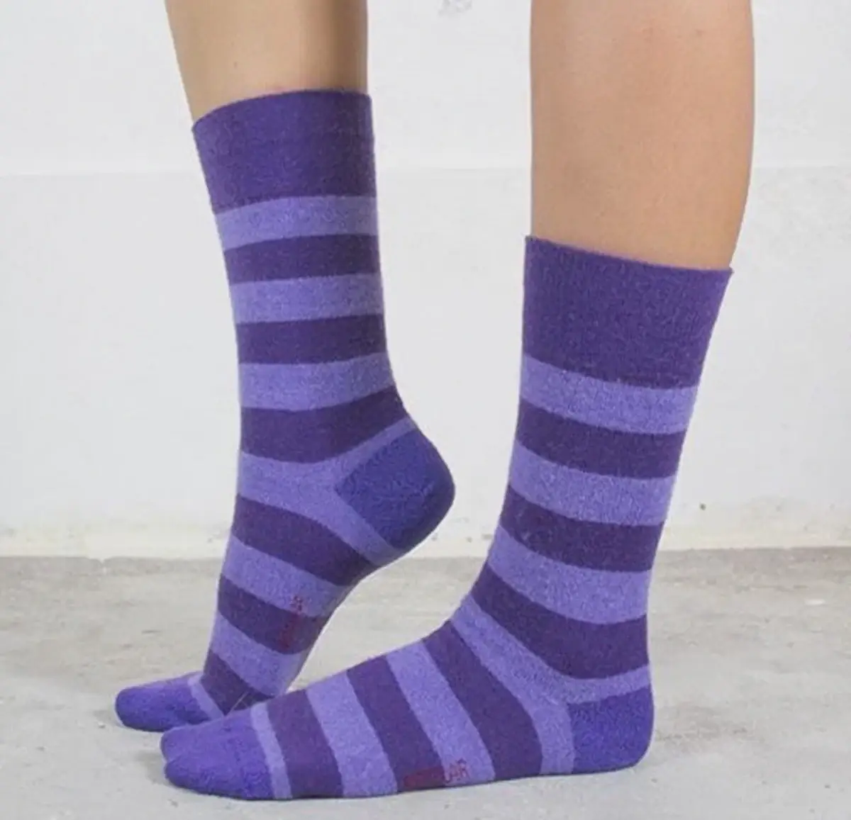This luxurious and warm sock is a blend of two natural yarns – fine merino wool and baby alpaca. The 19 micron Australian merino fleece wool is sourced from graziers in Southern NSW. The baby Alpaca is sourced from Peru and is soft, supple and smooth containing microscopic air pockets which are perfect for retaining feet warmth. This sock is not recommended for high abrasion use such as in work boots. A Health Sock® with no tight elastic top.