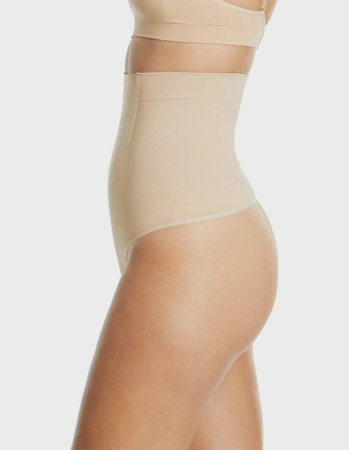 The It’s a Cinch Hi Waisted G-String features a special moisture wicking knit microfibre, to keep you warm in the winter and cool during the summer. The super high waist and light boning helps to slim and shape your waist without pinching or rolling.