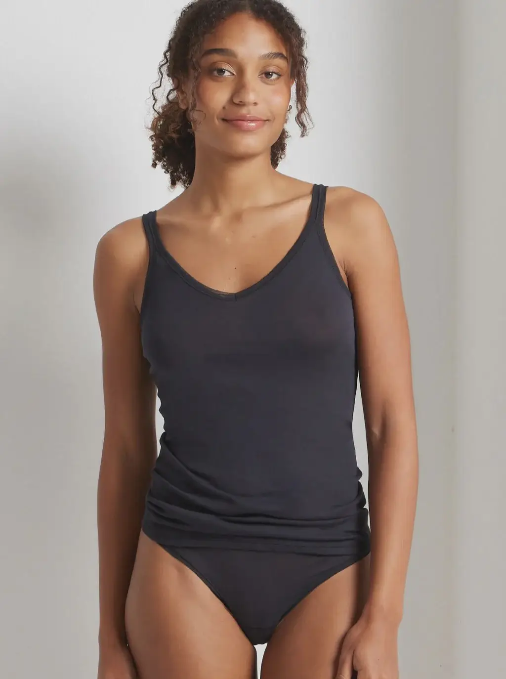 The Kayser Pure Cotton Cami in Black is the perfect all-year-round layering piece. Made from 100% superfine cotton, this beautifully soft singlet is comfortable and fits well under your clothing. Featuring a v-neck and mesh trim details, making this the perfect everyday black camisole.
