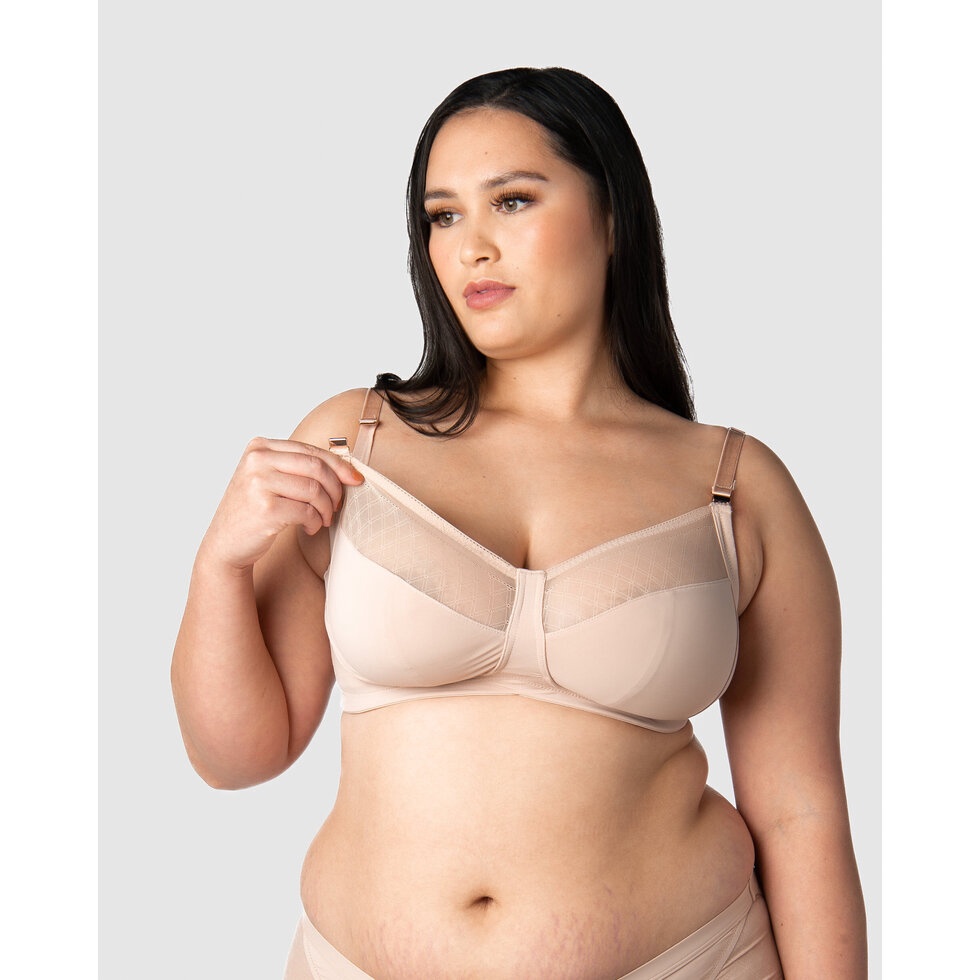 cotton-lined bottom cup is gentle on the skin, while the graphic lace adds a touch of sophistication, elevating this sleek, modern design into the ultimate nursing bra.