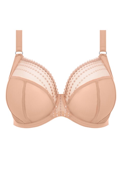 Matilda is a sheer plunge bra with embroidery that emulates rows of beads, one of which in a contrast colour.