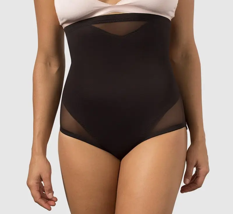 This hi-waist brief from MiracleSuit features sexy, sheer paneling which allows the garment to adjust to your body and create a perfect fit. The double panels provide extra firm control and shaping, but maintain a smooth look under your clothes. Choose it to shape your midriff, and slim your tummy & hips.