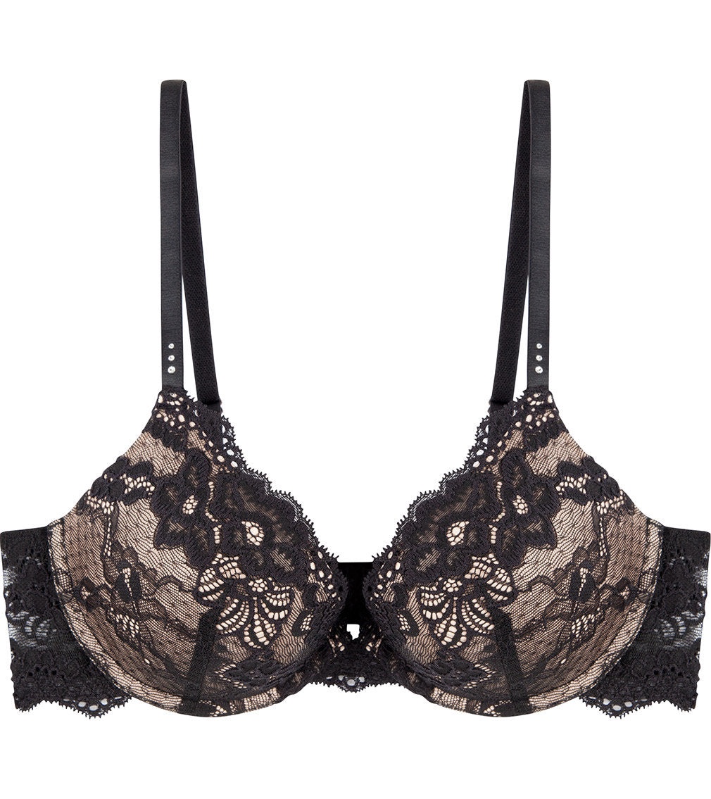 Turn heads with the Pleasure State My Fit Lace Push-Up Bra. This black bra offers a flattering lift, elegant lace detailing, and ultimate comfort for any occasion.
