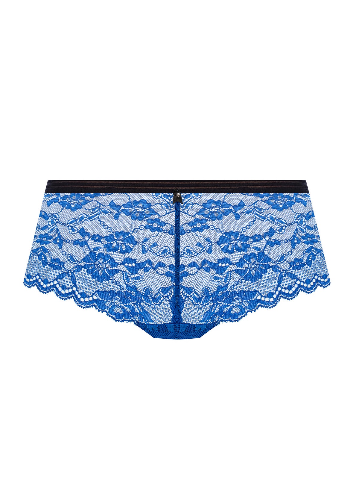 - Stretch lace front and back with scallop detailing