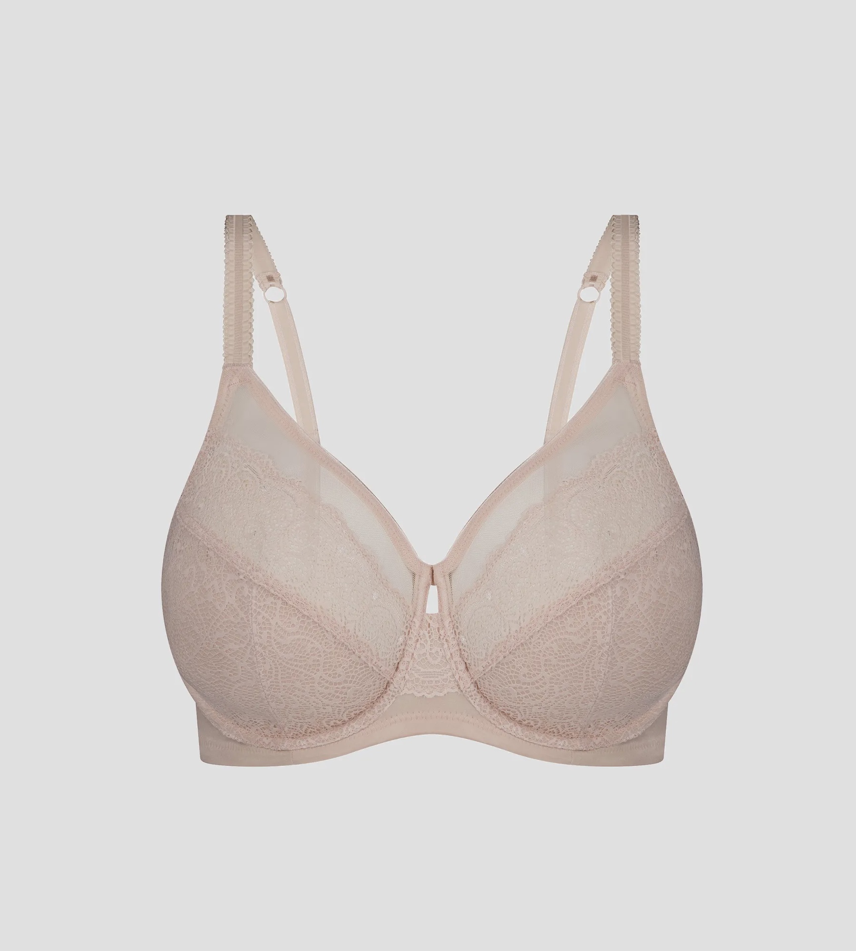 This Sheer Lace Underwire bra is perfect for everyday luxury providing ultimate support up to larger cups • Features lace through the cup and centre panel with a sheer top cup panel