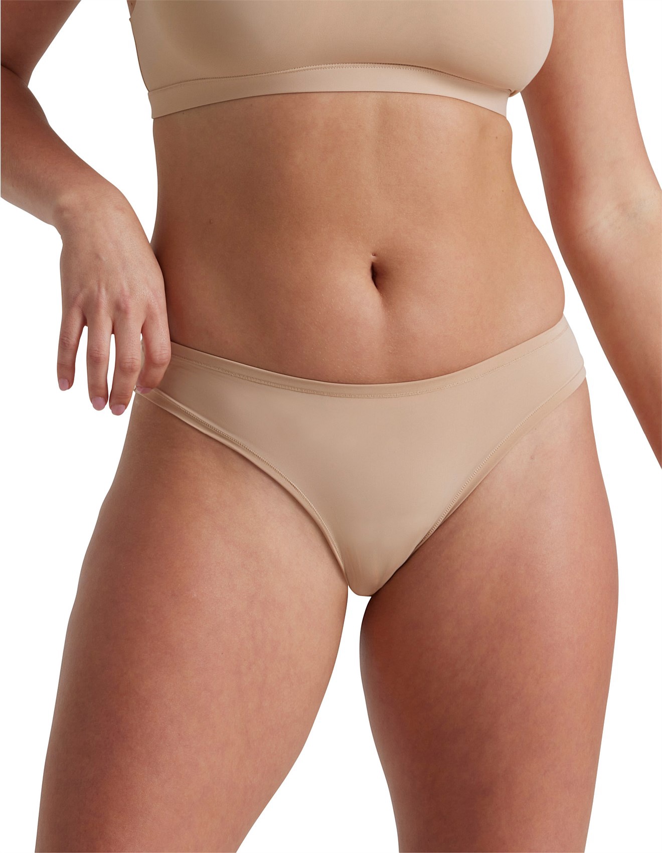 Embrace sustainable comfort with our Bare Essentials range. A stylish nod to eco-friendly underwear, the Bare Essentials Lace Cheeky Bikini features a lacey jacquard texture and is made using recycled nylon from pre-consumer waste.