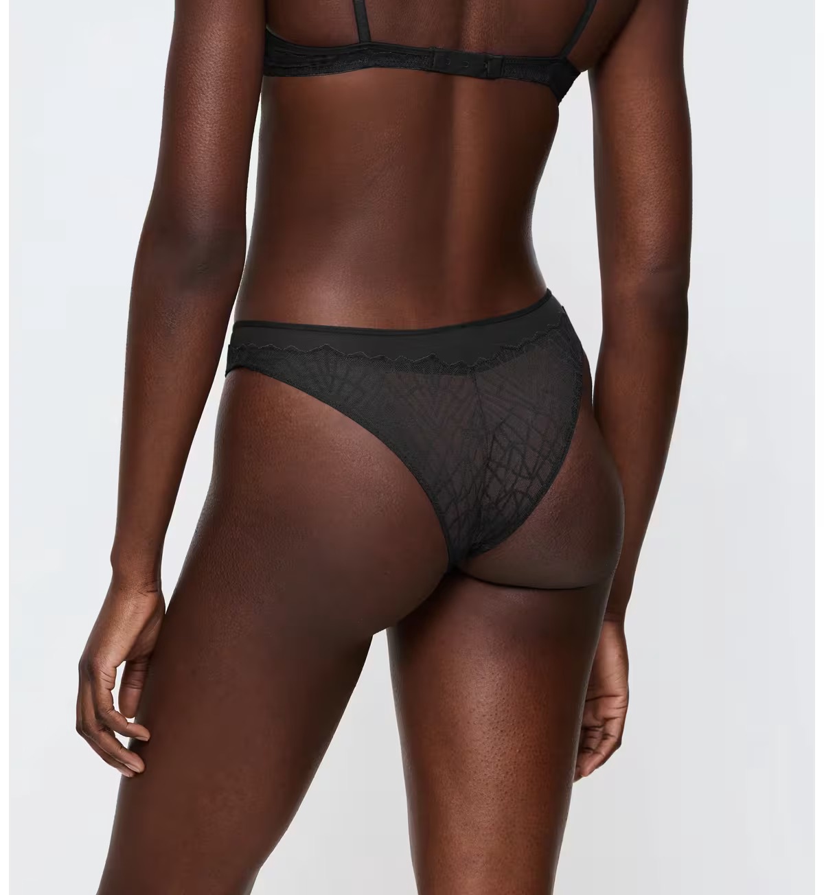 Brazilian briefs reimagined with striking graphic lace and delicate mesh detailing for the modern woman who values both style and comfort.