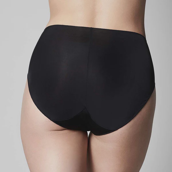 The Knicker won’t ride up because it is has a unique gusset design which works with the back seam to hug your bottom and stay in place. No pinching, no pulling, no riding up. The Knicker has no panty lines. A very fine elastic is covered in stitching to ensure there are no thick ridges round the legs or waist. The Knicker stretches to fit because we have selected a super soft, silky, stretchy micro touch fabric to mould to your shape without restriction.