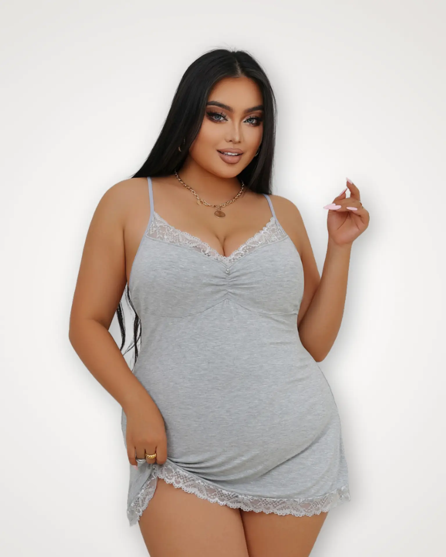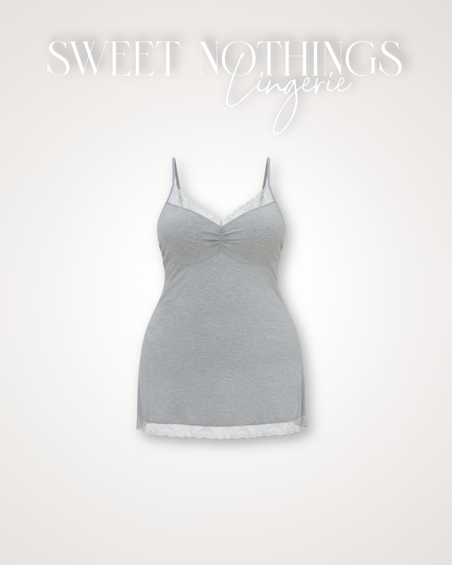 Slip into cloud-like comfort with this effortlessly chic grey sleep chemise, made for cozy nights and lazy mornings. Crafted from soft, stretchy fabric with a gentle drape, it features delicate lace trim along the neckline and hem for a touch of feminine charm. The ruched bust detail and adjustable spaghetti straps ensure a flattering and customizable fit, while the minimalist design makes it a sleepwear staple you’ll reach for again and again.